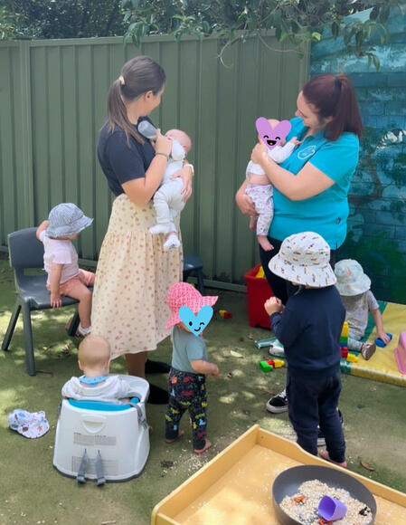 Photo: gentle transitions. Baby happy with mum close by in our children's space at Tanderra, Springwood.